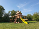 Детям постарше безусловно понравится яркая двухволновая горка со скатом 2.7 метра. А для активных и подвижных в этой площадке предусмотрен рукоход с удобным входом и модуль с металлическим турником.