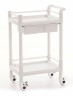 Стол манипуляционный с 3 полками и 2 ящиками, сделанный целиком из белого пластика*, с корзиной и ёмкостями для расходников